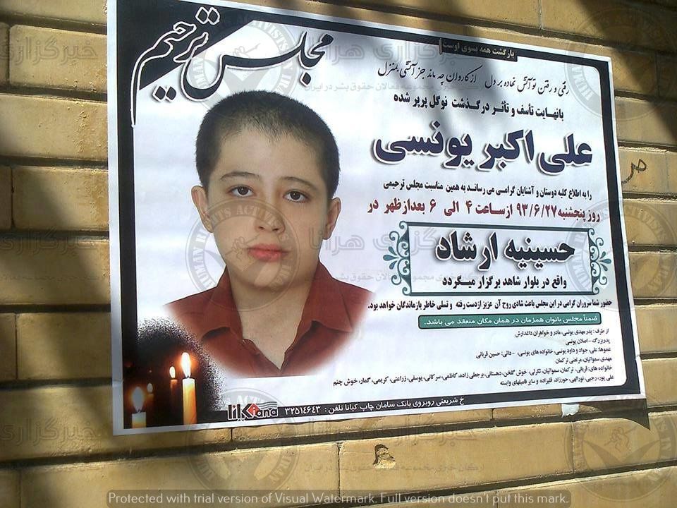 خبرگزاری هرانا - علی‌اکبر یونسی پسر بچه ۱۲ ساله همدانی در الگو برداری از صحنه اعدام جان خود را از دست داد.