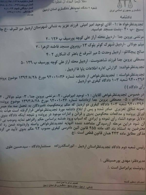- Navid Tashakor, a Baha’i Citizen, Arrested and Transferred to Dastgerd Prison in Isfahan