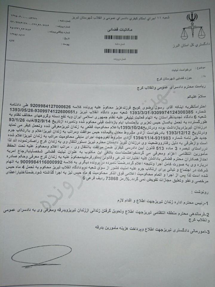 نامه سعید ماسوری از زندان قزلحصار: بابک شهبازی قربانی یک پرونده ساختگی شد