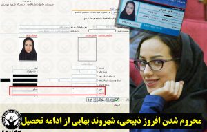 محرومیت از تحصیل افروز ذبیحی دانشجوی بهایی در پنجمین ترم تحصیلی / سند