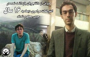 خانه > slide, آرشیو, اندیشه و بیان > دو فعال دانشجویی بازداشت شده در اعتراضات سراسری دیماه به ۱۶ سال زندان محکوم شدند