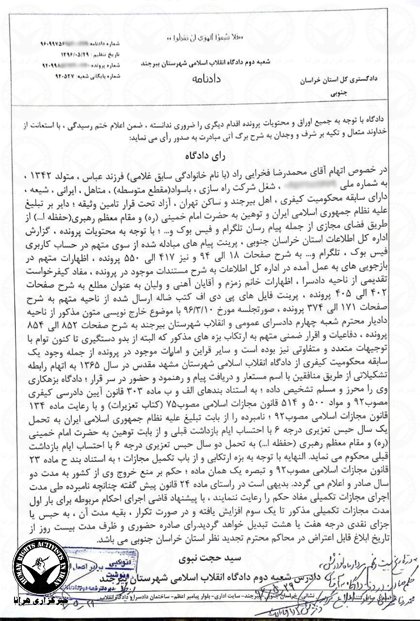 - Death Sentence of Seyed Mohammad-Javad Vafaie Upheld by the Supreme Court