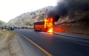 آتش گرفتن موتور اتوبوس حامل دانشجویان دختر ۹ مصدوم بر جای گذاشت