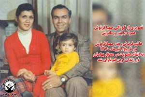 تصویری از کودکی صهبا فرنوش، همراه با پدر و مادرش هاشم فرنوش، پدر صهبا فرنوش، در تاریخ ۱ تیرماه ۱۳۶۰ ،به اتهام عضویت در محفل بهاییان در زندان اوین تیرباران شد.