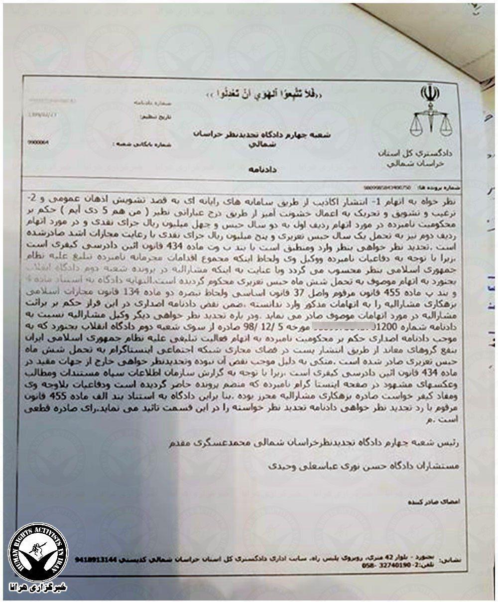 مطلب احمدیان در نامهای از زندان: “هیچگاه چنین درد شدیدی را تجربه نکردهام”