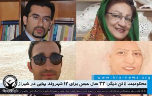 به گزارش خبرگزاری هرانا، ارگان خبری مجموعه فعالان حقوق بشر در ایران، دادگاه تجدیدنظر استان فارس چهار شهروند بهایی ساکن شیراز به نامهای فرهام ثابت، فرزان معصومی، شهناز ثابت و سهیلا حقیقت را طی حکمی مجموعا به ۸ سال حبس محکوم کرد.