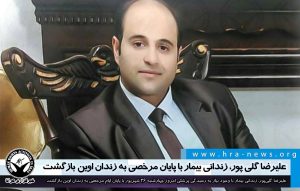 خانه > slide, آرشیو, زندانیان > علیرضا گلی پور، زندانی بیمار با پایان مرخصی به زندان اوین بازگشت