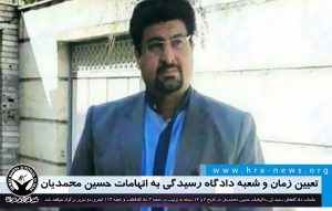خانه  > slide, آرشیو, اقلیت های ملی  >  تعیین زمان و شعبه دادگاه رسیدگی به اتهامات حسین محمدیان / سند
