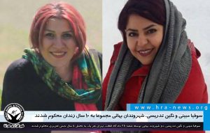 خبرگزاری هرانا – سوفیا مبینی و نگین تدریسی، دو شهروند بهائی توسط شعبه 28 دادگاه انقلاب تهران هر یک به تحمل ۵ سال حبس تعزیری محکوم شدند. این شهروندان ب...