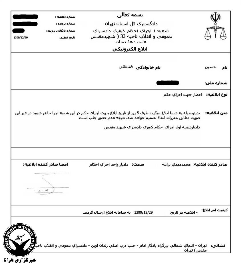 نامه سعید ماسوری: محرمانه بودن پرونده، اعتراف اجباری و دادگاههای نمایشی، مقدمات اعداماند