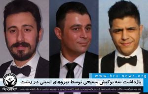 خبرگزاری هرانا – احمد (یوحنا) سرپرست، ایوب (فرزین) پوررضازاده و مرتضی حاجب مشهود کاری، سه نوکیش مسیحی روز یکشنبه 14 شهریورماه توسط نیروهای امنیتی در ر...