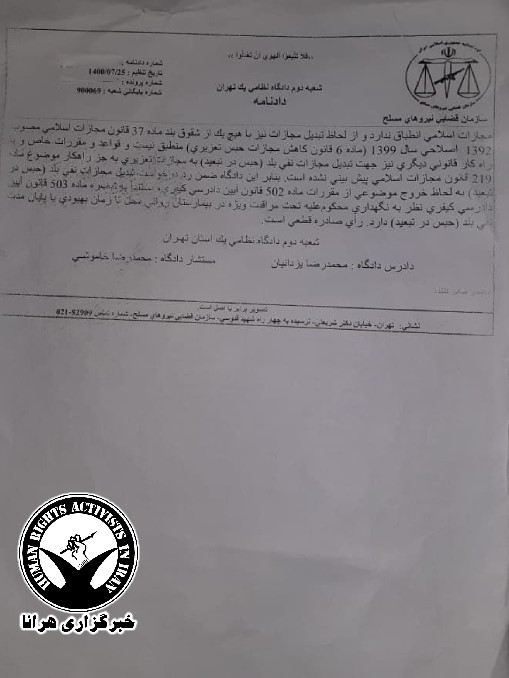 زهرا شهباز طبری در نامهای از زندان: حکم اعدام من بر پایهی استنادات نادرست و دادگاهی نمایشی صادر شد
