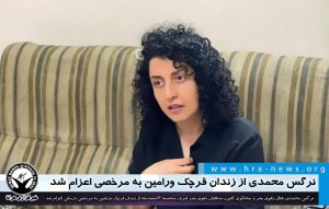 خبرگزاری هرانا – نرگس محمدی، فعال حقوق بشر و سخنگوی کانون مدافعان حقوق بشر امروز سهشنبه 3 اسفندماه از زندان قرچک ورامین به مرخصی درمانی اعزام شد. خان...