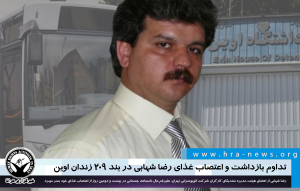 خانه  > slide, آرشیو, اصناف, اندیشه و بیان  >  تداوم بازداشت و اعتصاب غذای رضا شهابی در بند ۲۰۹ زندان اوین