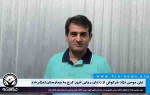 علی موسی نژاد فرکوش از زندان رجایی شهر کرج به بیمارستان اعزام شد