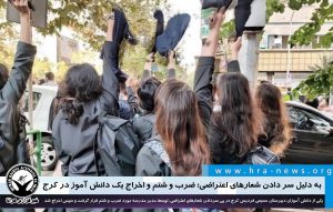 به گزارش خبرگزاری هرانا، ارگان خبری مجموعه فعالان حقوق بشر در ایران، روز یکشنبه ۸ آبان ۱۴۰۱، یکی از دانش دبیرستان سمیعی فردیس کرج، به دلیل سر دادن شعارهای اعتراضی، از مدرسه اخراج شد.