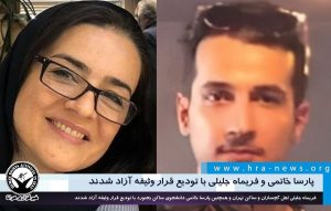 به گزارش خبرگزاری هرانا، ارگان خبری مجموعه فعالان حقوق بشر در ایران، پارسا خاتمی، دانشجوی ساکن بجنورد و فریماه جلیلی، شهروند ساکن تهران آزاد شدند.
