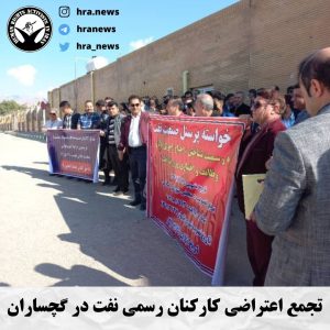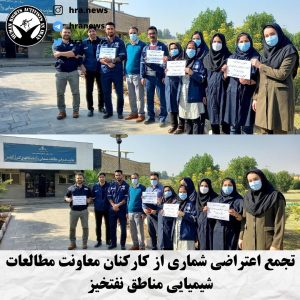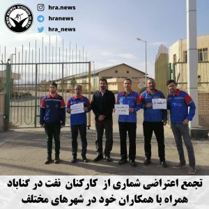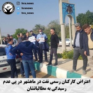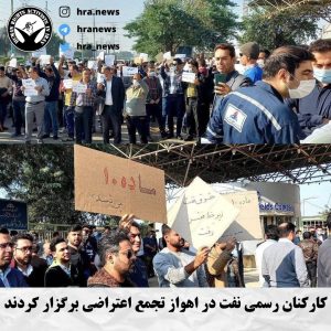 بر اساس این گزارش، شماری از کارکنان رسمی نفت در شهرهای اهواز، ماهشهر، گچساران، عسلویه، بیجار، گناباد و آتش نشانان منطقه نفتی جزیره خارک دست به تجمع اعتراضی زدند. این تجمع مطابق فراخوان از پیش اعلام شده برای برگزاری تجمع سراسری در اعتراض به عدم رسیدگی به مطالبات این کارکنان صورت گرفته است.