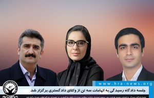 خانه > slide, آرشیو, اندیشه و بیان > جلسه دادگاه رسیدگی به اتهامات سه وکیل دادگستری برگزار شد