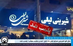 یک منبع مطلع در این خصوص به هرانا گفت: “پنج شنبه، در حدود ساعت یازده شب، شیرینی سرای لیلی واقع در شهر متل قو (سلمان شهر) به دلیل بی حجابی توسط پلیس نظارت بر اماکن عمومی این شهر پلمب شده است.”