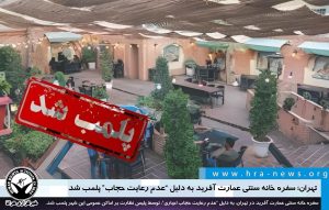 خبرگزاری هرانا – امروز سه شنبه سیزدهم تیرماه، سفره خانه سنتی عمارت آفرید در تهران، به دلیل “عدم رعایت حجاب اجباری”، توسط پلیس نظارت بر اماکن عمومی این شهر پلمب شد.
