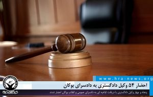 به گزارش خبرگزاری هرانا، ارگان خبری مجموعه فعالان حقوق بشر در ایران، پنجاه و چهار وکیل دادگستری با دریافت ابلاغیه ای به دادسرای بوکان احضار شدند.