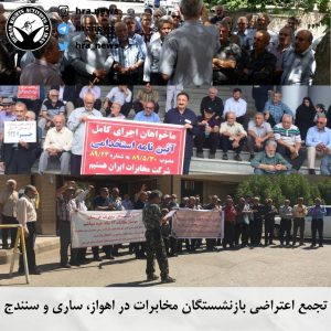 به گزارش خبرگزاری هرانا به نقل از اتحادیه آزاد کارگران ایران، امروز دوشنبه بیست و ششم تیرماه ۱۴۰۲، شماری از بازنشستگان مخابرات استان های خوزستان، مازندران، خراسان رضوی، کردستان و کرمانشاه تجمع اعتراضی برگزار کردند.