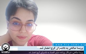 خبرگزاری هرانا - پریسا صالحی، خبرنگار روزنامه دنیای اقتصاد با دریافت ابلاغیه ای به دادسرای کرج احضار شد.