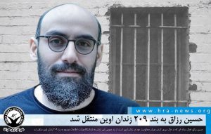 یک منبع مطلع نزدیک به خانواده وی ضمن تایید این خبر به هرانا اطلاع داد: “روز گذشته به آقای رزاق در زندان اعلام کردند که به خاطر راه اندازی کمپین تحریم انتخابات با او برخورد خواهد شد، سرانجام روز جاری او از بند عمومی زندان اوین به بازداشتگاه وزارت اطلاعات موسوم به بند ۲۰۹ زندان اوین منتقل شد. حسین پیشتر اعلام کرده بود که در صورت اعمال برخوردهای تنبیهی، دست به اعتصاب خواهد زد.”