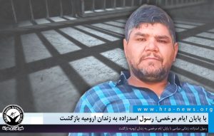خبرگزاری هرانا – امروز جمعه بیست و پنجم اسفندماه، رسول اسدزاده، زندانی سیاسی با پایان ایام مرخصی به زندان ارومیه بازگشت.