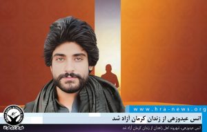 خبرگزاری هرانا – روز سه شنبه بیست و یکم فروردین ماه، انس عیدوزهی، شهروند اهل زاهدان از زندان کرمان آزاد شد.