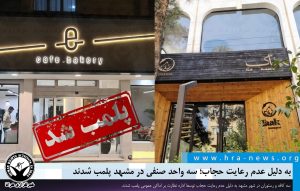 خبرگزاری هرانا – سه کافه و رستوران در شهر مشهد به دلیل عدم رعایت حجاب توسط اداره نظارت بر اماکن عمومی پلمب شدند.