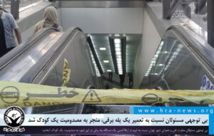 خبرگزاری هرانا – بی توجهی مسئولان معاونت فنی و عمرانی شهر تهران نسبت به لزوم در ارتقا ایمنی یک دستگاه پله برقی در این شهر، به مصدومیت یک کودک انجامید.