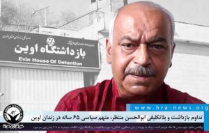 خبرگزاری هرانا – ابوالحسن منتظر، متهم سیاسی ۶۵ ساله علیرغم گذشت نزدیک به پنج ماه از زمان دستگیری، کماکان به صورت بلاتکلیف در بازداشتگاه وزارت اطلاعات موسوم به بند ۲۰۹ زندان اوین بسر میبرد.