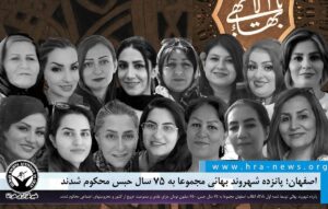 خبرگزاری هرانا – پانزده شهروند بهائی ساکن بهارستان اصفهان به نام های مژگان پورشفیع اردستانی، نسرین خادمی قهقرخی، آزیتا رضوانی خواه، شعله آشوری، مژده بهامین، بشری مطهر، سارا شکیب، سمیرا شکیب، رویا آزادخوش، نوشین همت، شورانگیز بهامین، ساناز راسته، مریم خورسندی، فیروزه راستی نژاد و فرخنده رضوان پی، توسط شعبه اول دادگاه انقلاب اصفهان مجموعا به ۷۵ سال حبس، ۷۵۰ میلیون تومان جزای نقدی و ممنوعیت خروج از کشور و محرومیتهای اجتماعی محکوم شدند.