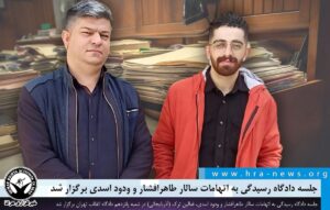 به گزارش خبرگزاری هرانا، ارگان خبری مجموعه فعالان حقوق بشر در ایران، جلسه دادگاه رسیدگی به اتهامات سالار طاهرافشار و ودود اسدی برگزار شد.