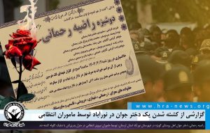 خبرگزاری هرانا – راضیه رحمانی، دختر جوان اهل روستای گویژه در شهرستان نورآباد استان لرستان، روز پنجشنبه ۳۱ خردادماه توسط یکی از ماموران نیروی انتظامی با شلیک گلوله کشته شد. این حادثه زمانی رخ داد که ماموران بدون داشتن حکم قضایی به ظن نگهداری مواد مخدر توسط پدر راضیه، وارد منزل او شدند و زن جوان که قصد جلوگیری از بازداشت پدرش را داشت، هدف گلوله قرار گرفت. روزنامه اعتماد در گزارشی در این رابطه نوشته است که برخی مسئولان قضایی مدعی بازداشت مامور خاطی و “غیر عمد” بودن قتل صورت گرفته شدهاند.