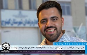 به گزارش خبرگزاری هرانا، ارگان خبری مجموعه فعالان حقوق بشر در ایران، سهند نورمحمدزاده، از بازداشت شدگان اعتراضات سراسری ۱۴۰۱، به زندان کهنوج کرمان بازگشت.