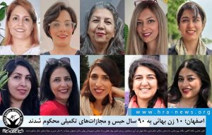 به گزارش خبرگزاری هرانا، ارگان خبری مجموعه فعالان حقوق بشر در ایران، ۱۰ شهروند زن بهائی ساکن اصفهان مجموعا به ۹۰ سال حبس و مجازاتهای تکمیلی محکوم شدند.