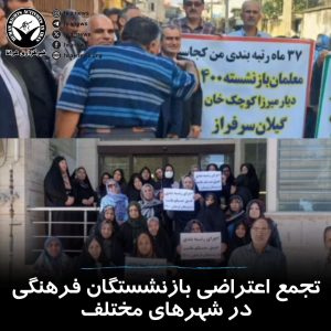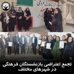 خبرگزاری هرانا – شماری از بازنشستگان فرهنگی در شهرهای تبریز، خرم آباد، مشهد، کرمان، رشت، شیراز، تاکستان، اقلید، لارستان، گراش، اوز، خنج، جویم، مرند، رفسنجان، قزوین، مریوان و سروآباد مقابل دفاتر نمایندگان این شهرها در مجلس و ساختمان صندوق بازنشستگی کشوری در رشت، جمعی از پاکبانان در دو محل جداگانه در مشهد، تعدادی از کارگران شرکت پتروشیمی پلی نار در تبریز، گروهی از متقاضیان مسکن ملی در دو محل جداگانه در اراک، جمعی از کارگران شرکت آوای جهانبین در کنارک، شماری از نانوایان در شهرهای لاهیجان، شیروان، کرمانشاه، کرمان و شیراز و گروهی از شرکت کنندگان آزمون فرهنگیان در تهران، با برگزاری تجمعات اعتراضی خواستار رسیدگی به مطالباتشان شدند.