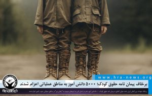 خبرگزاری هرانا – برخلاف تعهدات بین المللی ایران تحت عنوان الحاق به پیمان نامه حقوق کودک و بخش عدم به کارگیری کودکان در امور نظامی، ۵۰۰۰ دانش آموز دختر در استان البرز به اردوهای موسوم به “راهیان نور” در مناطق عملیاتی جنوب کشور اعزام شدند.
