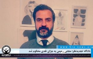 به گزارش خبرگزاری هرانا، ارگان خبری مجموعه فعالان حقوق بشر در ایران، دادگاه تجدیدنظر استان قزوین محکومیت مجتبی رحیمی به پرداخت جزای نقدی را عیناً تایید کرد.