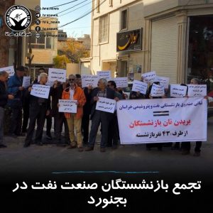 به گزارش شورای هماهنگی تشکل های صنفی فرهنگیان ایران، روز جاری شماری از بازنشستگان صنعت نفت در مقابل ساختمان صندوق بازنشستگی در بجنورد دست به تجمع اعتراضی زدند.