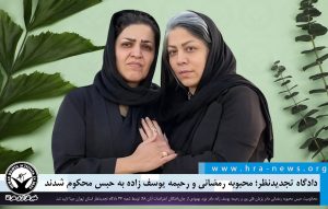 به گزارش خبرگزاری هرانا، ارگان خبری مجموعه فعالان حقوق بشر در ایران، محکومیت حبس محبوبه رمضانی، مادر پژمان قلی پور و رحیمه یوسف زاده، مادر نوید بهبودی از جانباختگان اعتراضات آبان ۹۸ در مرحله تجدیدنظر عینا تایید شد.