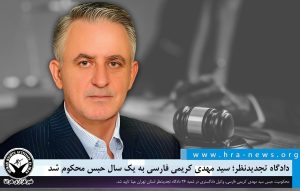 خبرگزاری هرانا – محکومیت حبس سید مهدی کریمی فارسی، وکیل دادگستری در شعبه ۳۶ دادگاه تجدیدنظر استان تهران عینا تایید شد. وی در دادگاه بدوی به یک سال حبس محکوم شده بود.