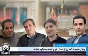 به گزارش خبرگزاری هرانا به نقل از کانال شورای هماهنگی تشکل های صنفی فرهنگیان ایران، امید شاه محمدی، پرویز احسنی، کاوه محمدزاده و هیوا قریشی، به اخراج از محل کار و تبعید محکوم شدند.