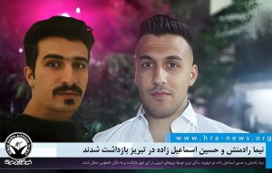 به گزارش خبرگزاری هرانا، ارگان خبری مجموعه فعالان حقوق بشر در ایران، نیما رادمنش و حسین اسماعیل زاده در تبریز بازداشت شدند.