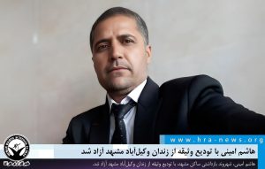 خبرگزاری هرانا – هاشم امینی، شهروند بازداشتی ساکن مشهد، روز گذشته، با تودیع وثیقه از زندان وکیلآباد مشهد آزاد شد.