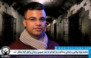 خبرگزاری هرانا – بابک پاکنیا، وکیل مدافع سید محمدجواد وفایی ثانی، زندانی سیاسی محکوم به اعدام روز جاری اعلام کرد که این زندانی به بند ۶/۱ زندان وکیل آباد مشهد منتقل شده است.