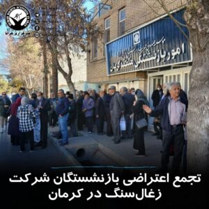 به گزارش شورای بازنشستگان ایران، روز جاری، جمعی از بازنشستگان شرکت زغال‌سنگ کرمان، در مقابل ساختمان موسسه صندوق حمایت و بازنشستگی کارکنان صنایع فولاد در کرمان، دست به تجمع زدند.